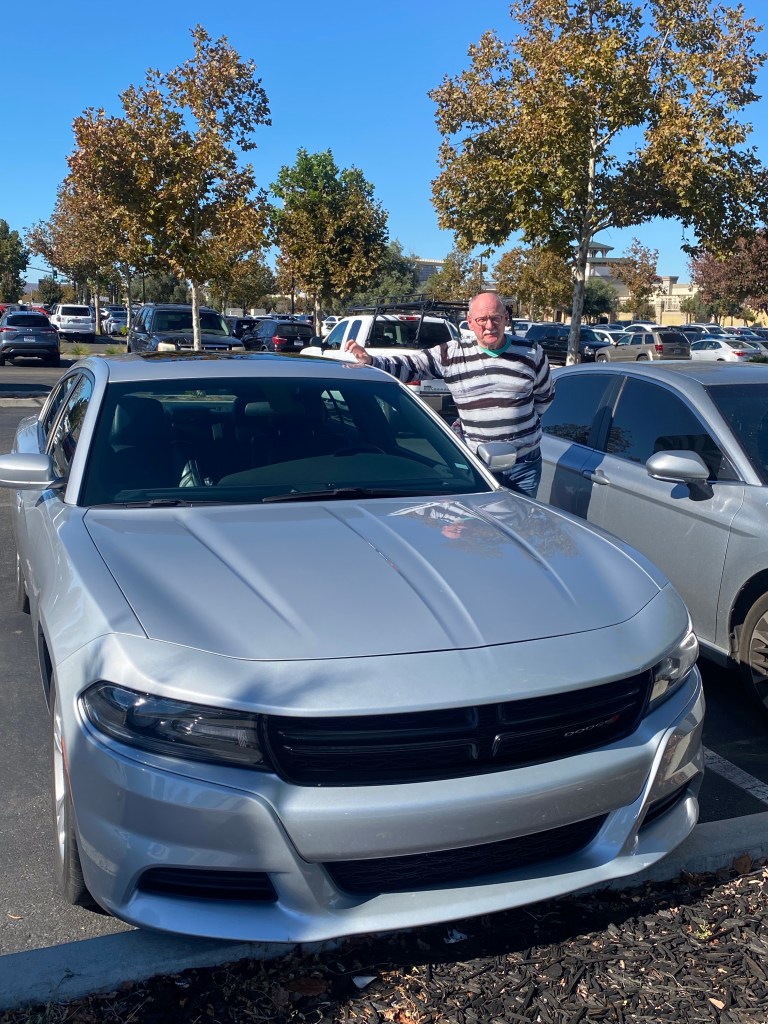 Ein enorm sonniger Tag begrüßte uns und belohnte uns für das frühe aufstehen. Gut gefrühstückt und ausgecheckt stehen wir vor unserem knallroten Dodge Charger……